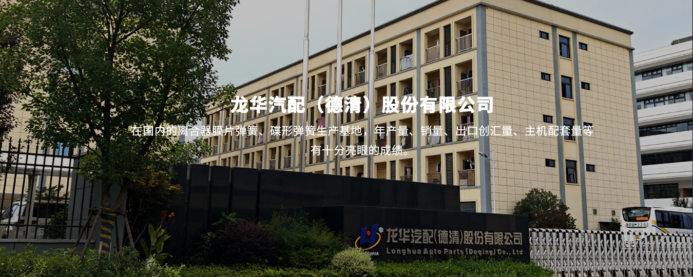 乐鱼在线平台是一家专业生产制造汽车离合器膜片弹簧、农用机械及工程机械用碟形弹簧的高新技术企业;公司始创立于1995年,前身是乐清市龙华汽配制造有限公司,因发展需要于2005年迁入浙江省海宁市农业对外综合开发区,成立了浙江龙华汽配制造有限公司,投资11000万元,征用土地26666平方米,建设厂房20000多平方米,购置设备200多台套,形成了年产500万套各类膜片弹簧的生产能力。2020年,为了稳固行业地位,提高市场份额,正式入驻德清,在浙江德清经济开发区征用土地40000平方米,投资25000万元,建设了89856平方米的高标准智能化厂房,购置更新各类生产、检测、机加、环境治理等设备300多台套.......